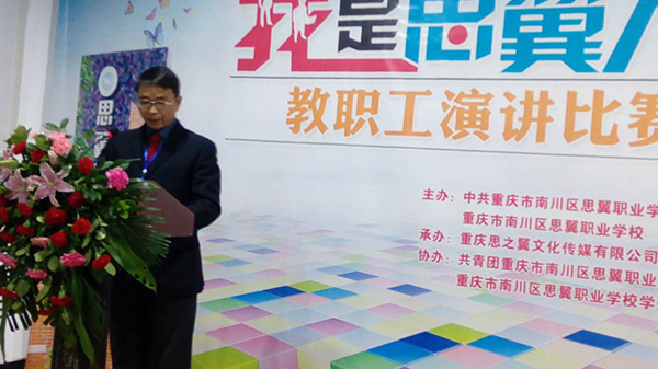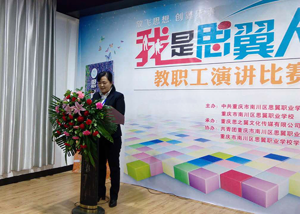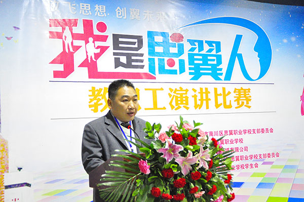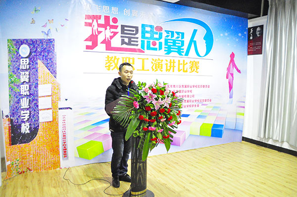 2017年12月8日下午2点整,在思翼学校党支部的组织领导下,我校2017年“我是思翼人”教职工演讲比赛活动在学校综合二教室隆重举行。本次演讲活动由中共重庆市南川区思翼职业学校党支部委员会和重庆市南川区思翼职业学校主办;重庆思之翼文化传媒有限公司承办;共青团重庆市南川区思翼职业学校支部委员会和重庆市南川区思翼职业学校学生会协办。活动由学生会夏兰茜同学主持,演讲活动评委会由:学校校长肖斌、党支部书记简开健、副校长莫阳敏、环保局调研员李洪川(特邀)、退休教师李祥君(特邀)5人组成。演讲活动由肖斌校长的演讲主题词《倔强的力量——思翼理想》隆重拉开序幕。本次活动各参赛人员准备充分,服装整洁大方,精神焕发,振振有词,从不同的角度,以丰富的内容舒发了对学校的情怀,诉说了工作中的点滴。最后,13人参赛,评选出一等奖一名,二等奖二名,三等奖三名。学校领导及评委现场为本次获奖人员颁奖。活动结束后,思翼学校党支部书记简开健同志作了总结和指导性发言,希望此类活动经常性开展,激发教职员工的爱校情怀和才能施展。(如图)