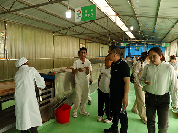 上午,来到了南川区中桥乡美泽农业公司红薯粉加工厂,由企业负责人罗胜鱼带领创业导师及同学们进行了基地现场观摩,了解到企业的运营模式、产品特点、加工流程等。