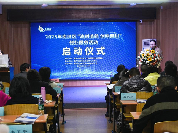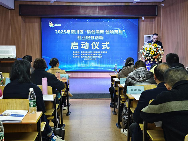 3月19日上午,2025年南川区“渝创渝新 创响南川”创业服务活动启动仪式在南川区思翼职业培训学校正式开展。嘉宾及参会人员有:区人社局党组成员、就业和人才中心主任曹明君,区就业和人才中心副主任谢戟,区就业和人才中心创业指导科科长王中华,市场监督管理局综合行政执法支队副支队长沈勇,重庆思之翼文化传媒有限公司总经理肖兴旺,以及40名创业者。