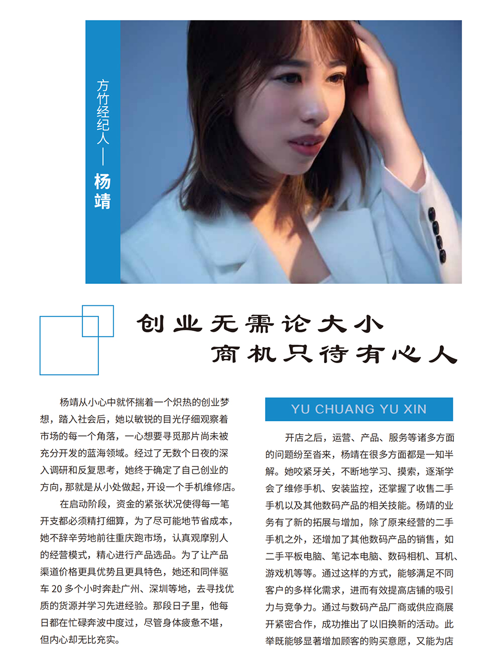 创业无需论大小 商机只待有心人:杨靖