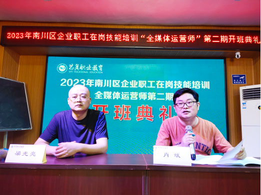 九月是充满希望和梦想的月份,2023年南川区企业职工在岗技能培训“全媒体运营师”第二期在思翼职业培训学校正式开班。学校党支部书记、校长