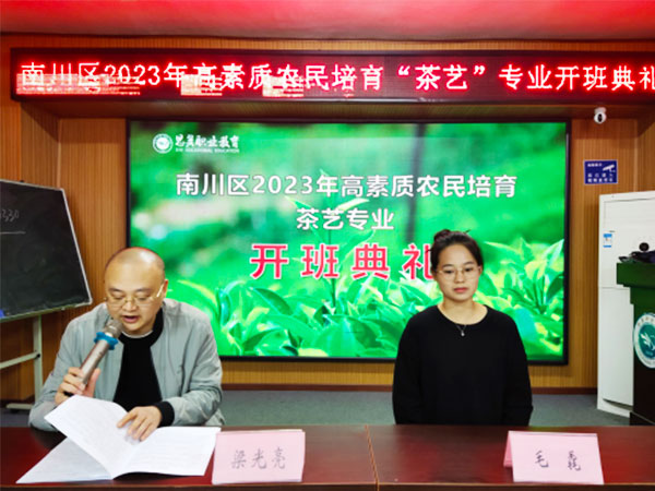 2023年10月17日上午9点在思翼职业培训学校,举行了南川区2023年高素质农民培育茶叶专业开班典礼。开班典礼上,学校副校长梁光亮介绍了学校