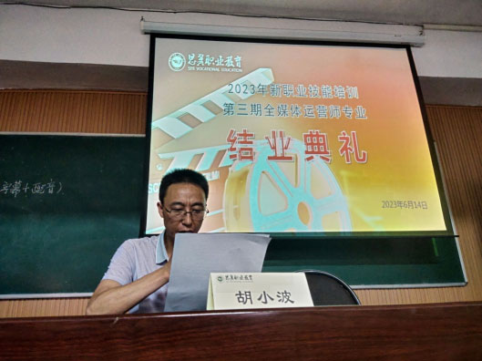 2023年5月7日在思翼职业培训学校南园路教学点,隆重举行了南川区第二期全媒体运营师专业结业典礼,在重庆市职业技能公共实训中心考评员的见