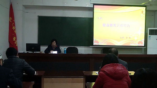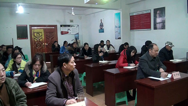 南川区思翼职业培训学校党支部于2018年1月5日下午在学校多功能室开展了本年度第一次“主题党日”活动。本次活动邀请了南川区人力资源和社会保障局副处调研员(分管非公党建工作)余哲同志、南川区人力资源和社会保障局技能开发科(分管培训机构党建工作)姜红兵同志、南川区东城街道东金华社区党委书记秦茂强同志、南川区东城街道东金华社区党委成员(社区主任)金仁忠同志参加。本次主题党日,邀请了区人力资源和社会保障局副处调研员余哲同志结合十九大精神和当前职业教育发展状况为全体党员同志上了一堂《职业教育大有可为》为主题的党课。