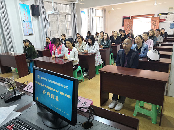 2019年4月11日,我校第1期创业培训+计算机信息化办公在学校综合教室一举行开班典礼,人社局督察老师吕信柯和学校领导一同参加,典礼上莫阳敏校长对学校情况进行了介绍,对培训专业作了具体讲解,对培训纪律作了严格要求,最后吕老师对本次培训传达了就业局的相关规定及要求。